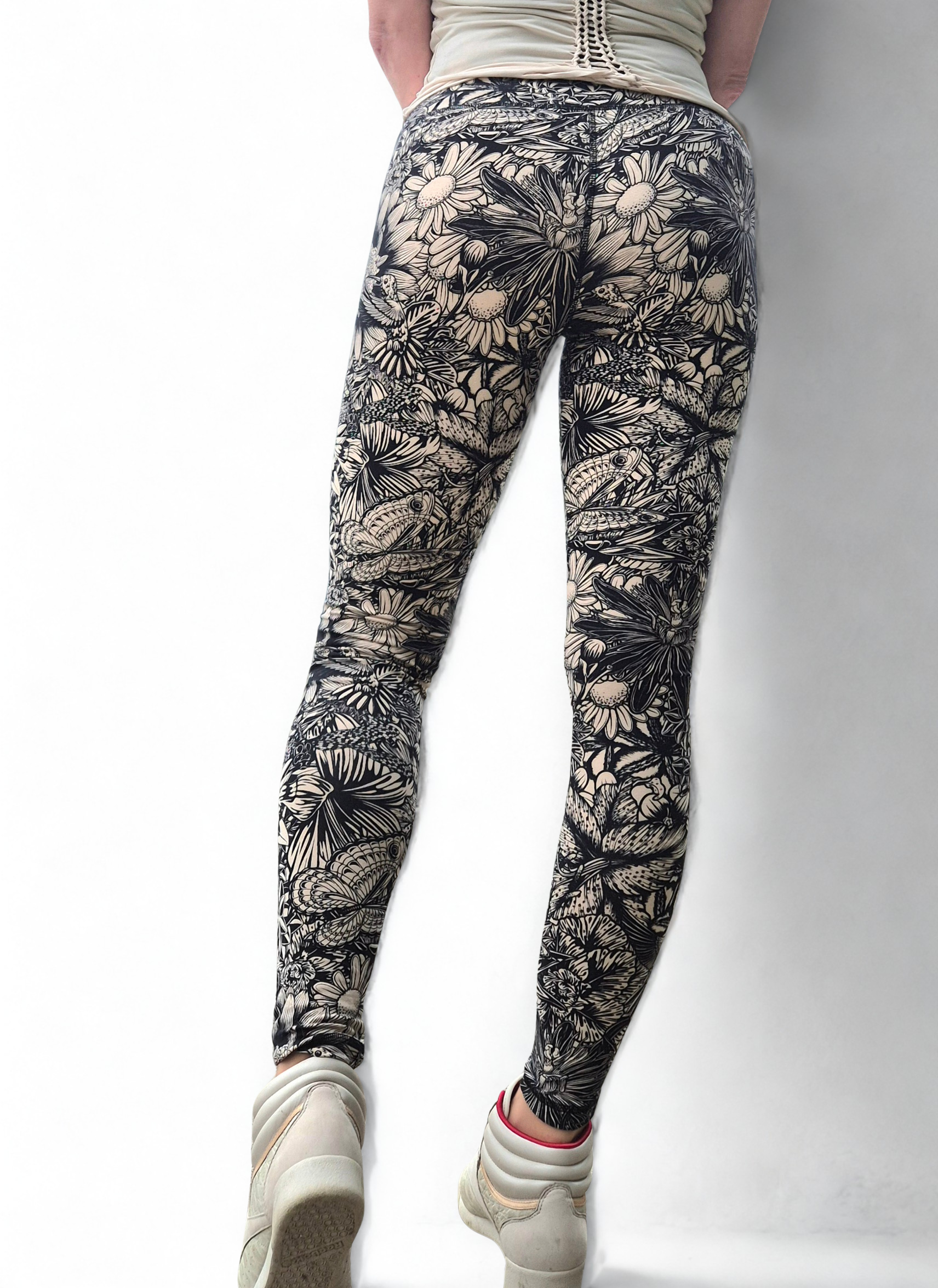 Model wearing Cream Black Bloom Leggings - Funky Simplicity
