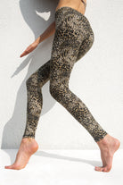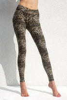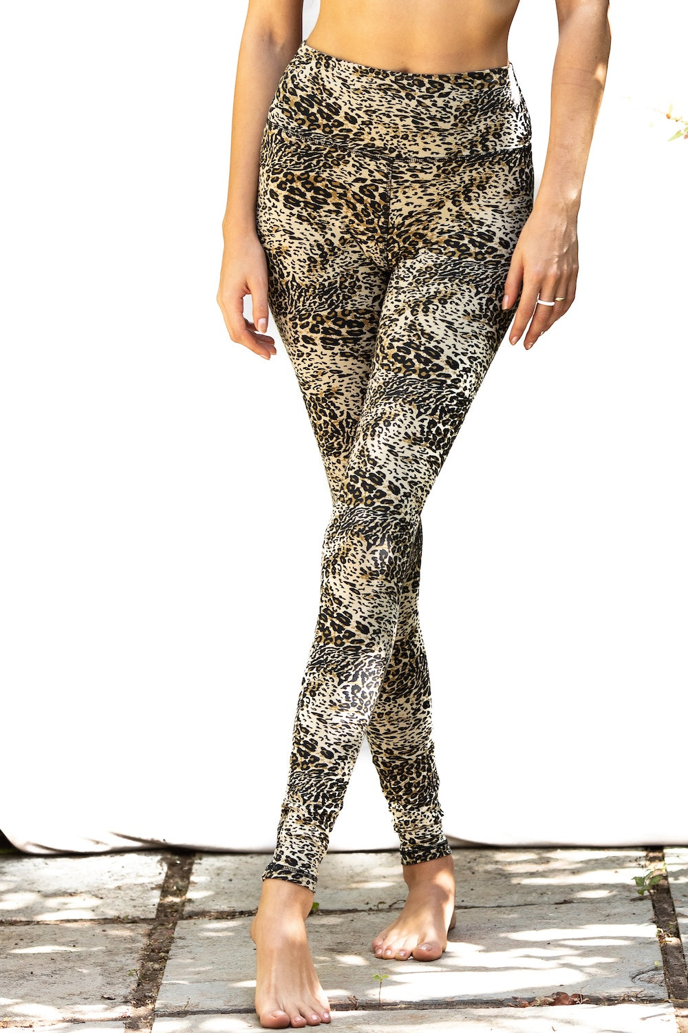 A fantastic pair of cream leggings with an black with olive-greenish leopard print, which will last wash after wash. This print is very popular and an old-time classic and stylish version of the timeless leopard leggings. Not shiny but classy :-)