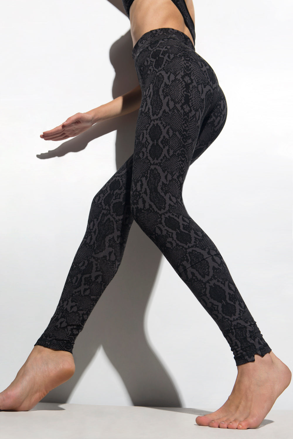 Grey Black Snake Super High Waist Leggings with a wide band that sits very comfortably around your waist. You can also fold over the band to make your leggings at the exact height you prefer. Also great for the winter months to keep the kidneys warm.
