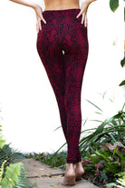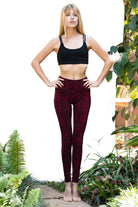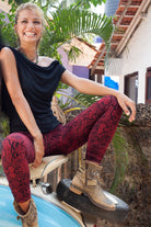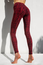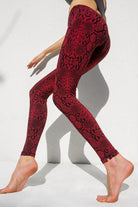 Leggings in a Red-Black Snake print with either a high rise, that sits very comfortably around your waist. You can also fold over the band to make your leggings at the exact height you prefer. Also great for the winter months to keep the kidneys warm.
