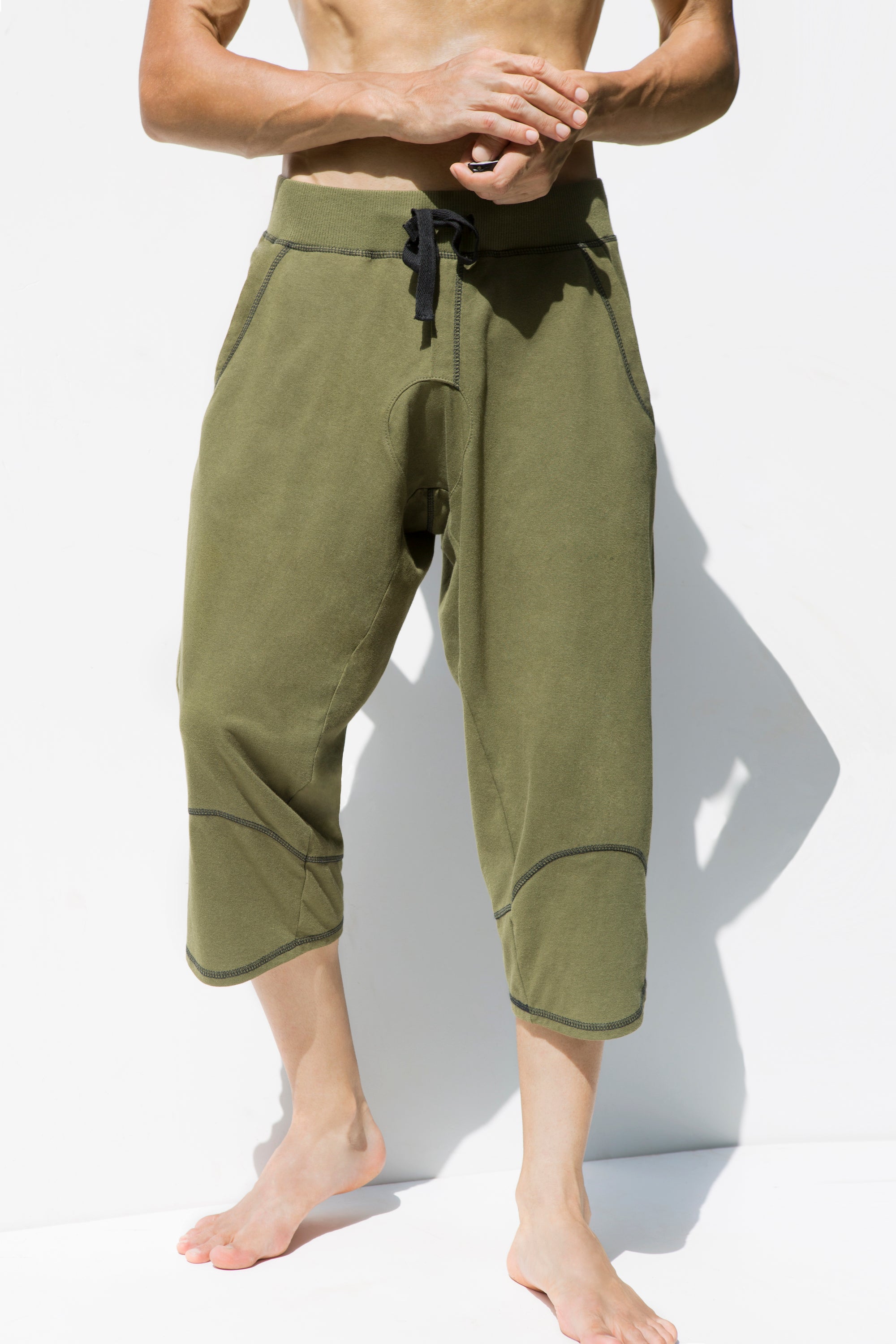 Men 3/4 Pants - Yoga Men Capris - Olive Green