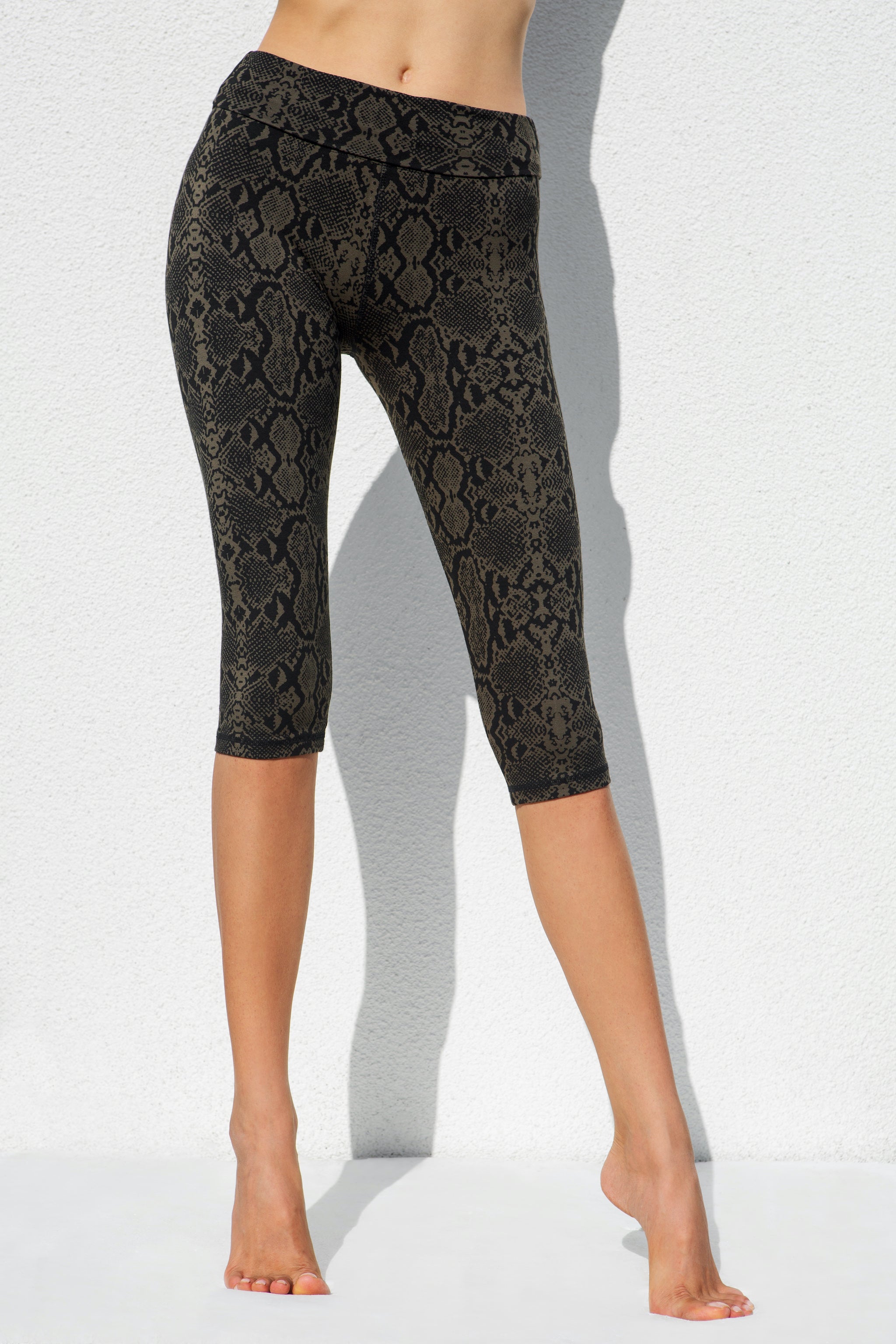 These Super High Waist Capri 3/4 pants are in a gorgeous Olive-green with our black snake print.