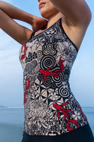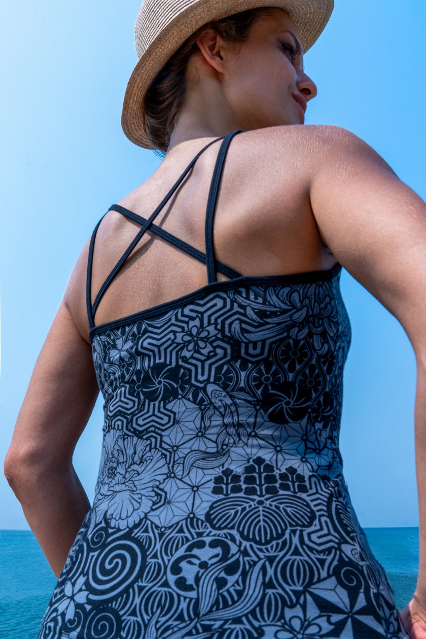 Made in beautiful cream cotton spandex with a black Nagomi print with red Koi fish. Also available in our other great color nagomi prints.