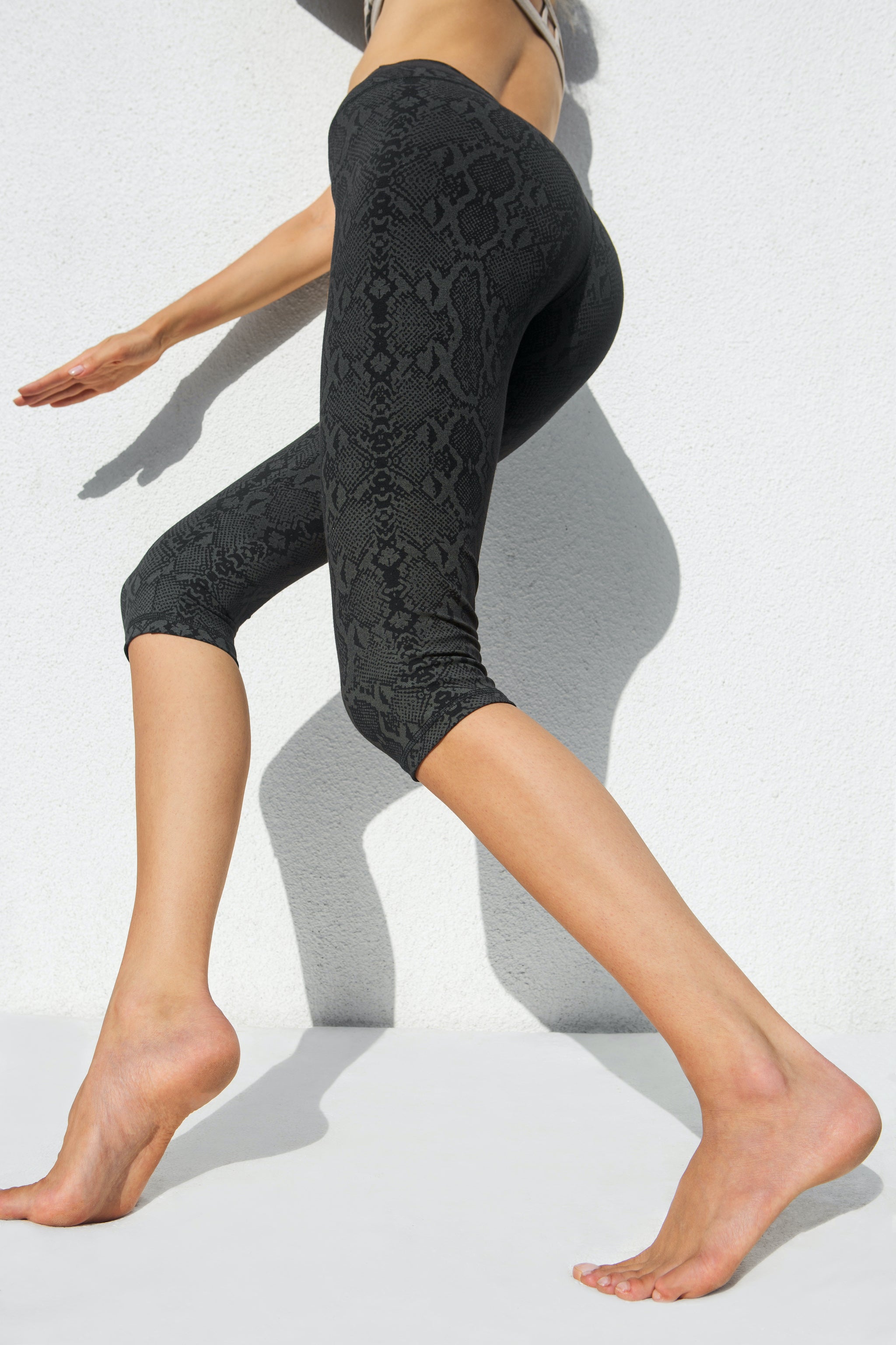 Black Grey Snake Capris - Yoga 3/4 pants - leggings