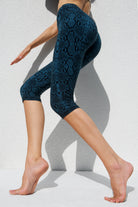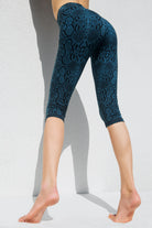 These High Waist Cotton spandex Capri 3/4 pants are in a gorgeous sea-green (Tosca) color with a black snake print. Made in the best quality cotton spandex, made to last and love for years.