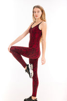 Our Red black snake print catsuit is made from high-quality cotton spandex in fair trade conditions in sunny Bali. It keeps its shape, doesn't shine and it doesn't get transparent however much you stretch in yoga class.