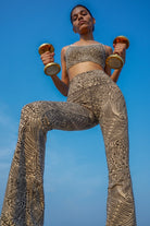 Model wears size S/M on the first 2 photo's and the last photo Ramya is wearing size XS.