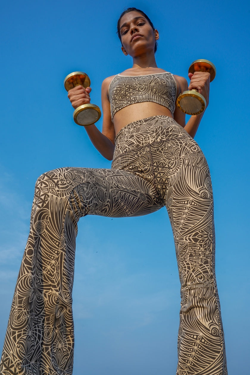 A great sporty bra top with a cross-back strap back in the Tribal print.