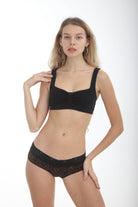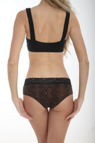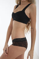 Gorgeous hipster underwear with the softest lace. In super soft brown cotton spandex with our black Snake print.