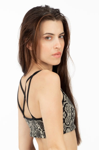Snake Cross Back Bra - Cream Black
