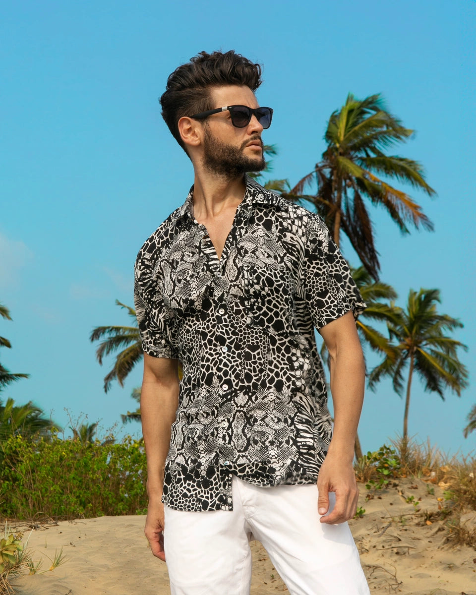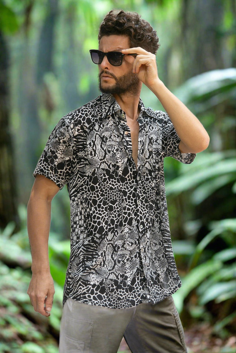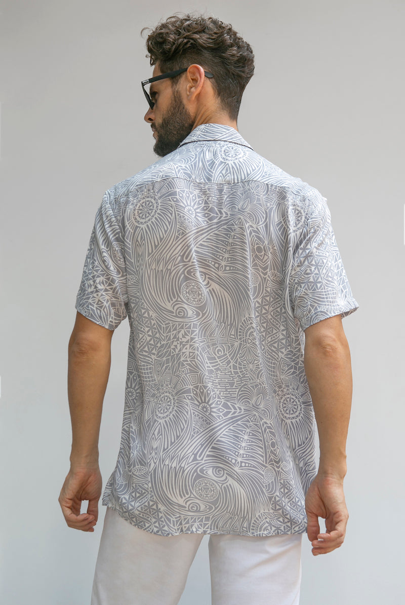 Finally a shirt for men in our amazing rayon voile material. Soft, flowy, light and super comfortable. Stays beautiful no matter how many times you wash it, no pilling. High quality and with our gorgeous Feather print in blue.